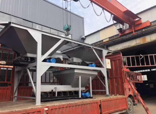 工作前由裝載機(配料機地下安裝時可用人工上料)分別向各個儲料斗供給砂、石物料。